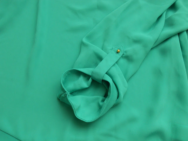 Comprei ainda duas blusas de meia estação. São fininhas, em material fresco e podem ser usadas com manga comprida ou "apanhada" para 3/4. São então versáteis e óptimas para dias de Verão ou Primavera mais frescos. Este modelo existia em quatro cores diferentes. Amarelo pastel, branco, verde água e azulão. Acabei por trazer estas últimas duas por achar que as outras eram demasiado transparentes. Mais uma vez as blusas são mais compridas atrás do que à frente.