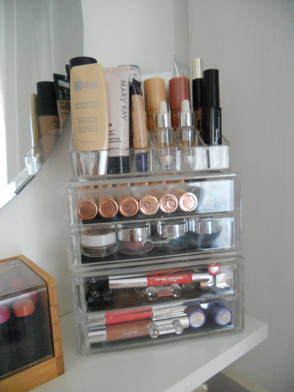 Já há algum tempo que não vos actualizava em relação à maquilhagem que tenho e guardo na minha Makeup Station. O facto de ter trazido um pequeno móvel da casa dos meus pais, que em tempos tinha desenhado e mandado fazer com o propósito de guardar bijuteria, faz com que seja esta a altura ideal para vos mostrar tudinho o que tenho actualmente.
