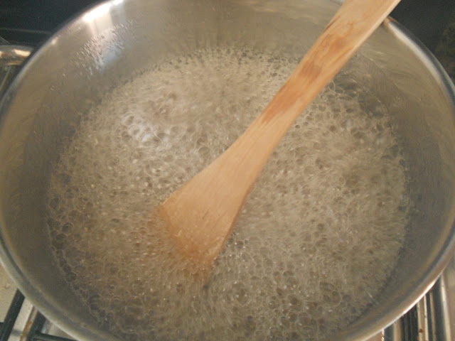 Como levanta muita espuma com a fervura, convém que durante os quatro minutos em que os ingredientes estão a cozinhar, estejamos atentos e sempre a mexer o preparado até desligar o lume.