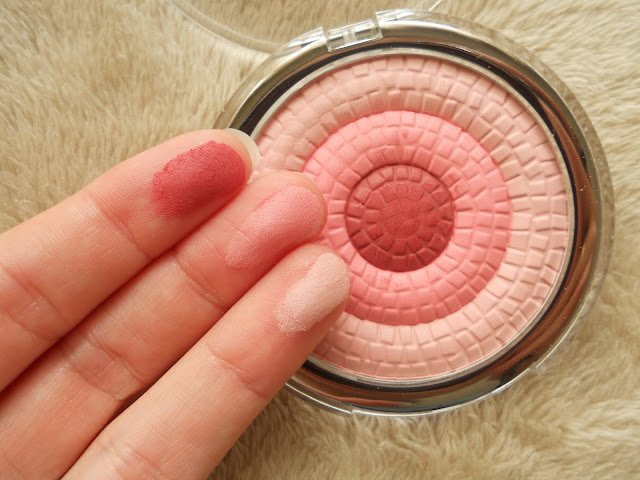 O blush, lindo como poderão ver abaixo, tem três cores distintas que podem ser usadas em separado ou em conjunto. O toque é muito macio e aveludado e não parece ser poeirento.