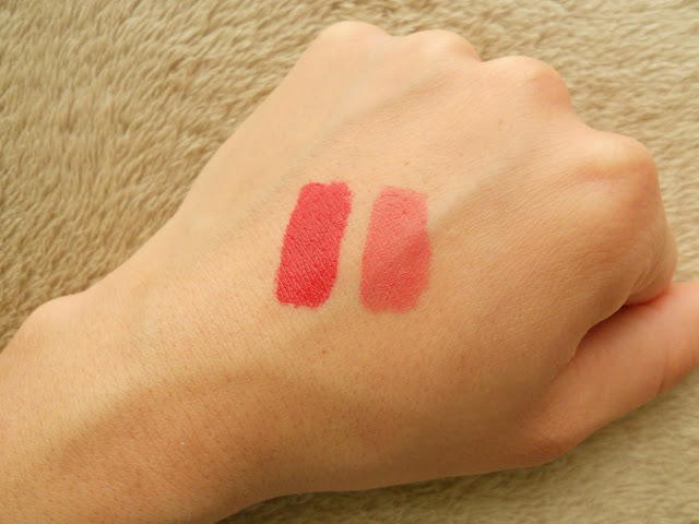 Os batons bastante cremosos, têm um aplicador como o dos glosses. Não parecem ser de acabamento mate, mas são semi-opacos e têm uma pigmentação muito boa.