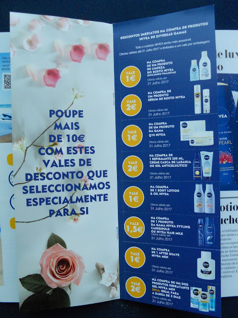 Por fim recebi a nova revista da Nívea, a Dia-a-Dia. Esta edição traz como sempre alguns vales de desconto, agora no meio da revista numa folha extra e cartonada. Desta vez não há nenhuma amostra no seu interior, mas só os vales já em si já são uma grande oferta.