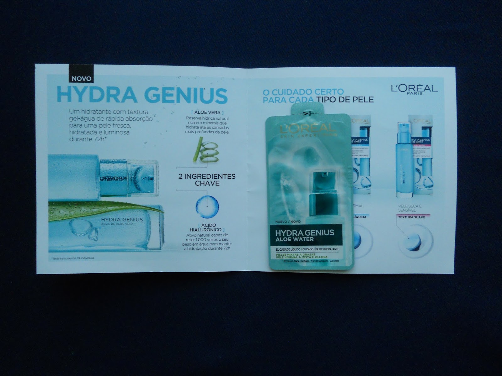 Mais tarde surgiu no facebook a oportunidade de pedir uma amostra do novo hidratante líquido Hydra Genius da L'Oréal, que creio ainda estar activa (aqui).