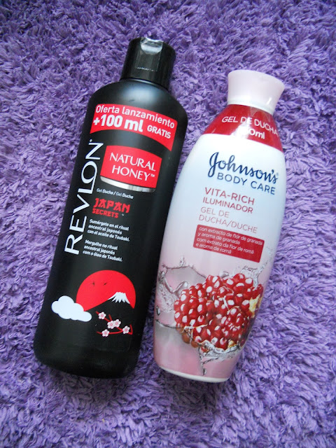 Mais uma vez e como vem sendo tradição, comprei géis de banho. Um novo da Revlon, Japan Secrets e um da Johnson's. O da Revlon como era um produto de lançamento, a embalagem tinha 100ml grátis, ficando assim 750ml de gel de banho por apenas 1,49€. O da Johnson's é o Vita-Rich de Romã. Entretanto a marca lançou mais aromas desta linha, como Rosas, Uva e Frutos Vermelhos, mas quando fui a um hipermercado e cheirei todos, o que adorei foi mesmo o de romã uma vez que o de papaia já conhecia, então encomendei o de Romã e estou deliciada. Custou apenas 1,75€ e não a média absurda de 5€ como encontramos por cá, sem qualquer desconto, por isso mesmo a metade do preço compensa mandar vir de Espanha.