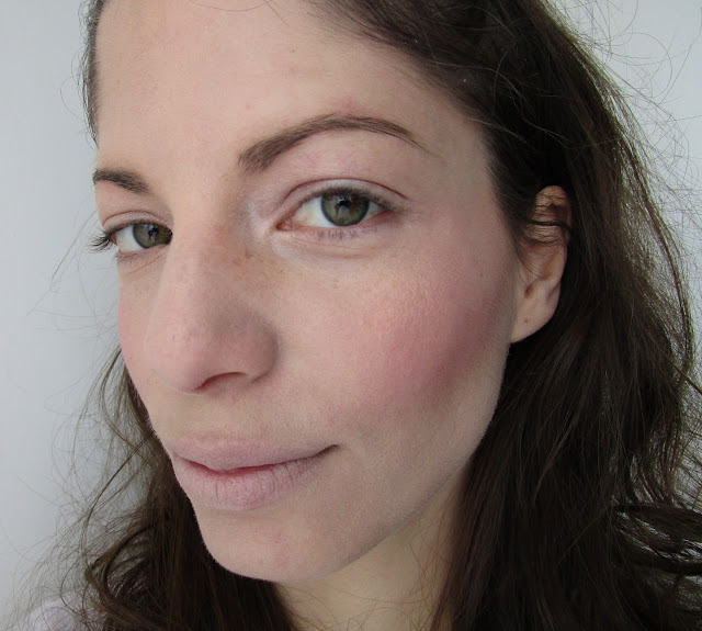 O pó compacto é uma estreia. É o Banana Powder da NYX, que a minha querida A. me ofereceu (post aqui). Com a base da Catrice por norma pouco ou nenhum pó uso, porque ela já deixa a pele bem sequinha, mas decidi usar este no fim de aplicar todos os produtos de rosto, não só para os selar, mas também para os suavizar ligeiramente. Ficou tudo muito natural e saudável a meu ver :)