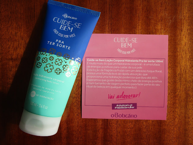 Da linha Cuide-se bem - Faça isso por você, o creme Pra Ter Sorte vem numa embalagem perfeita para termos sempre connosco na mala e óptima para viajar porque apenas tem 100 ml.