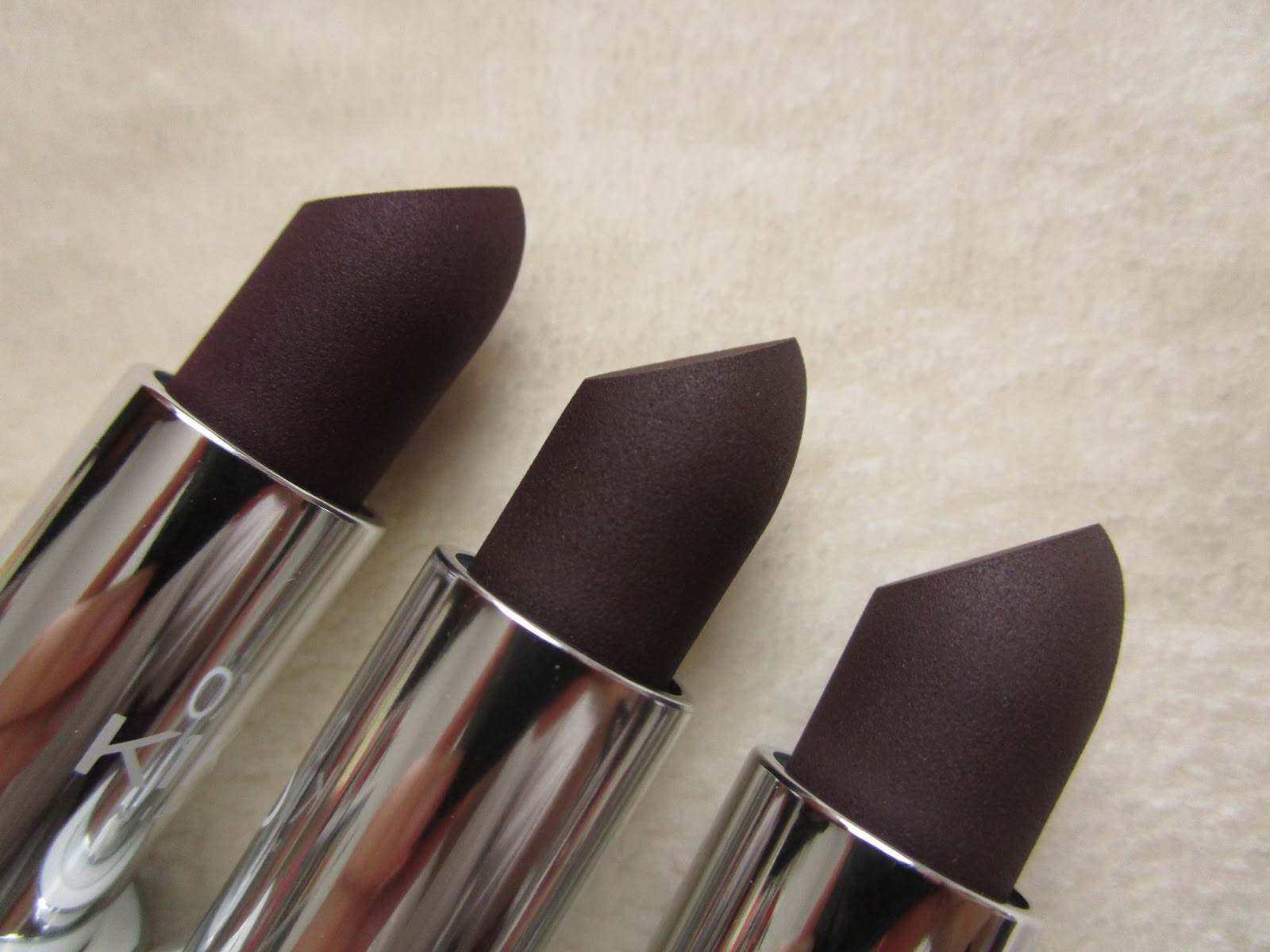 A marca continua sem colocar na maioria dos casos o nome de cada batom na própria embalagem, por isso lá tive de ir à internet pesquisar. Recebi o 05 Opera Burgundy, o 06 Mystic Blackberry e o 07 Chocolate Truffle.