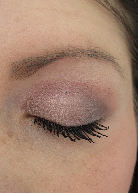 Depois apliquei do meio da pálpebra móvel e até ao canto externo do olho a 5ª sombra da paleta, um tom de bege com subtom rosado, semelhante à primeira que usei, mas um pouquito de nada mais escura como podem ver na foto de swatches mais acima.
