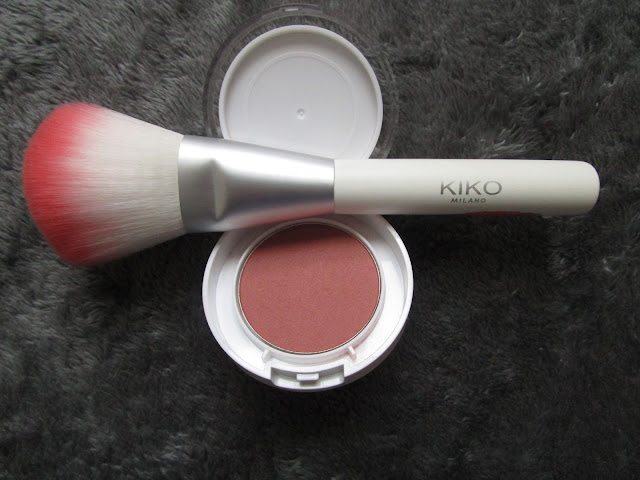 Na parte de baixo da embalagem temos o blush, num tom rosa queimado muito bonito, que nos dá um ar saudável quando aplicado com moderação. Tanto o blush como o iluminador são bastante pigmentados, e o primeiro apliquei com um pincel bem fofo da Kiko MIlano, da Edição Limitada The Artist (post aqui).