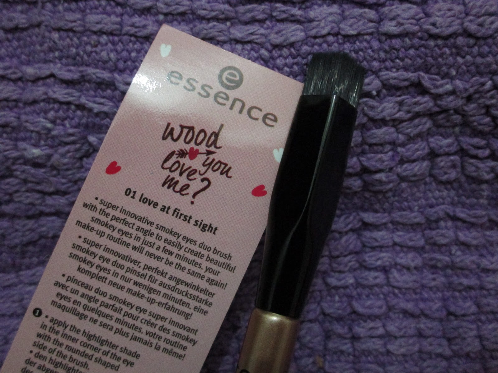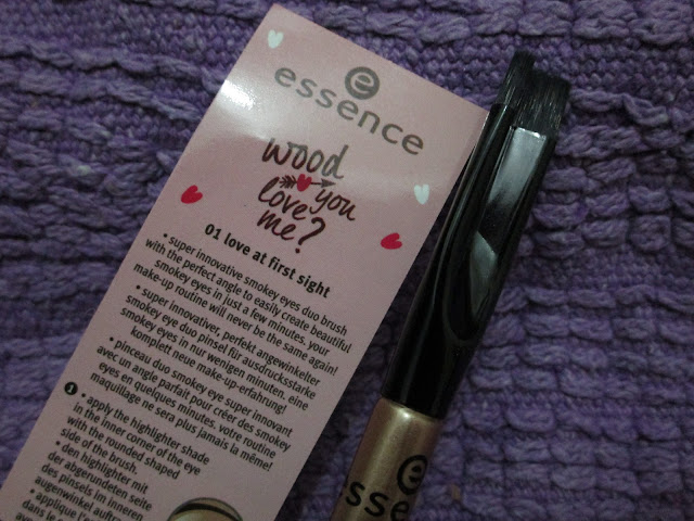 A Essence esmera-se sempre nos nomes, e este pincel chama-se 01 Love at First Sight. Num dos lados temos um pincel lápis comum e gorducho, bom para esfumar sombras. No outro lado temos um pincel em forma de V ou de telhado, como preferirem. Nunca vi nenhum pincel semelhante, e espero que seja prático como parece, na aplicação e esfumar da sombra no canto externo do olho. Ele promete... vamos ver se cumpre.